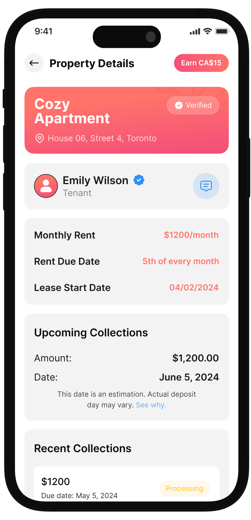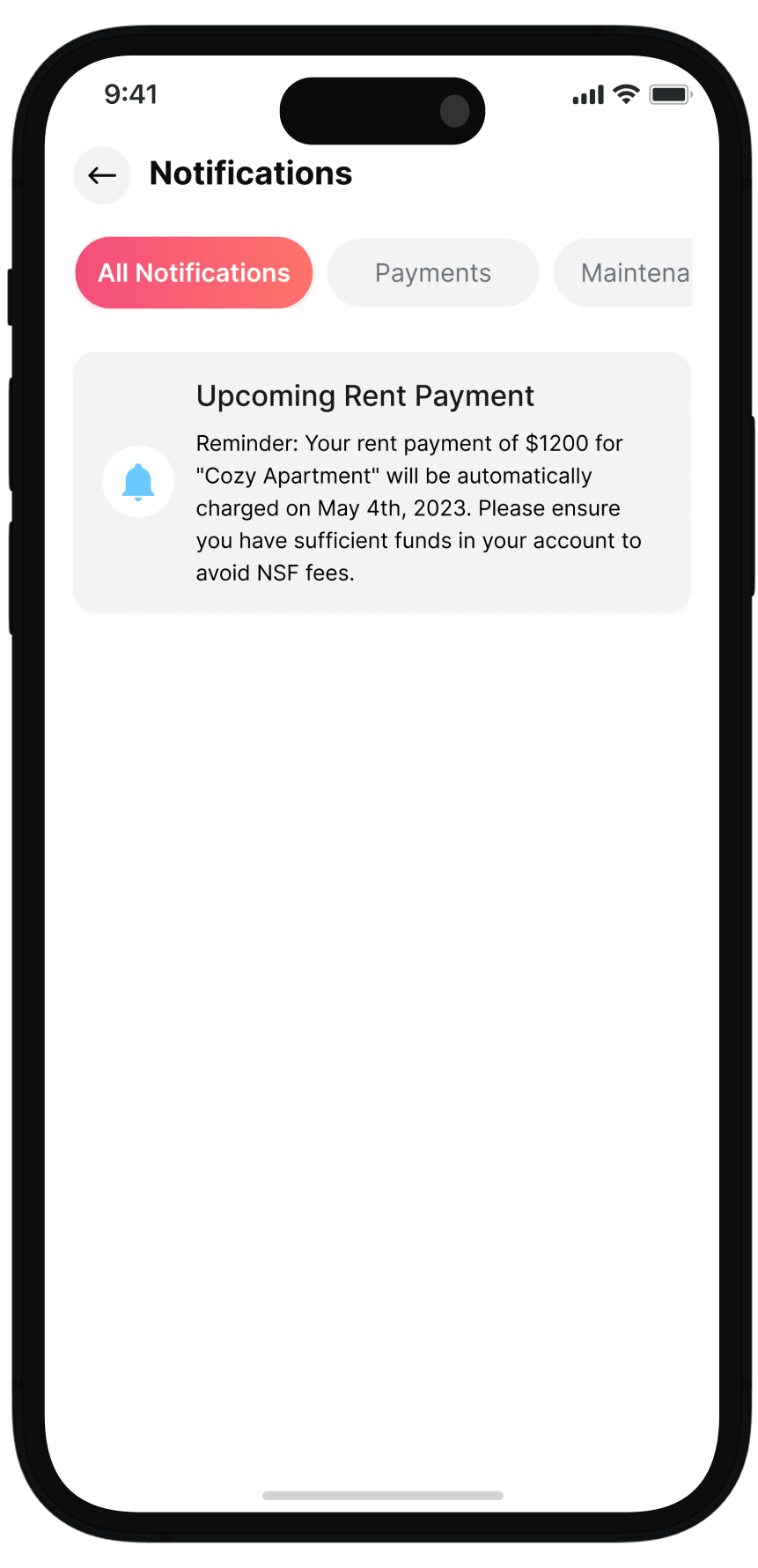 Both you and your tenant get reminder notifications 2 days before rent is due.